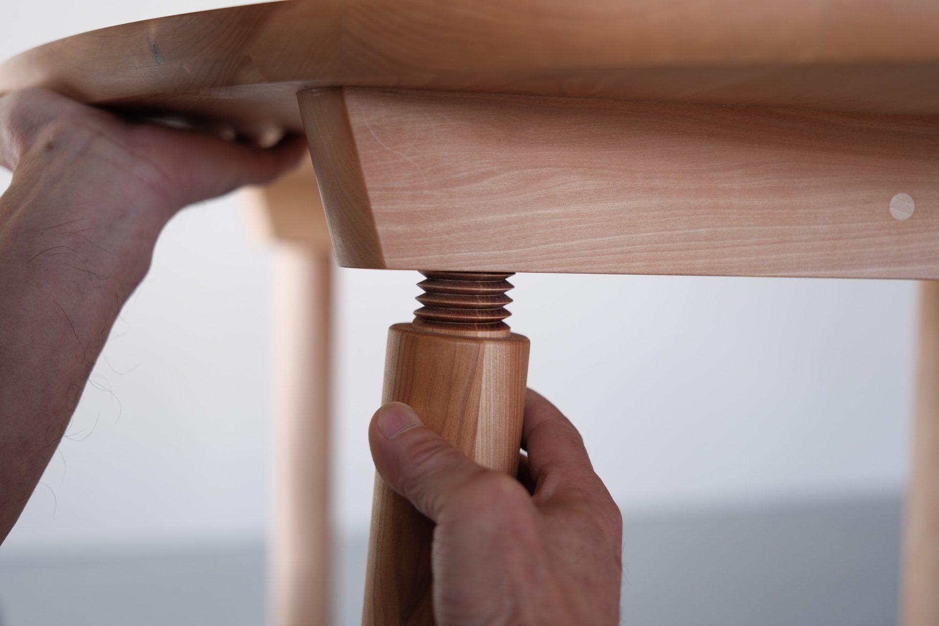 写真は、テーブルの脚です。脚の付け根が木ネジになっていて天板と脚は脱着できます。